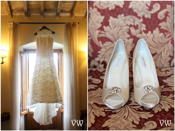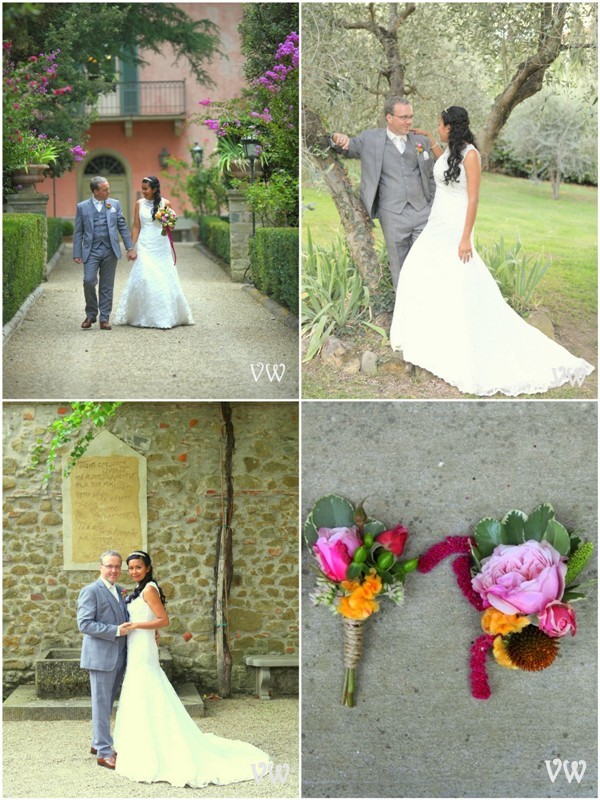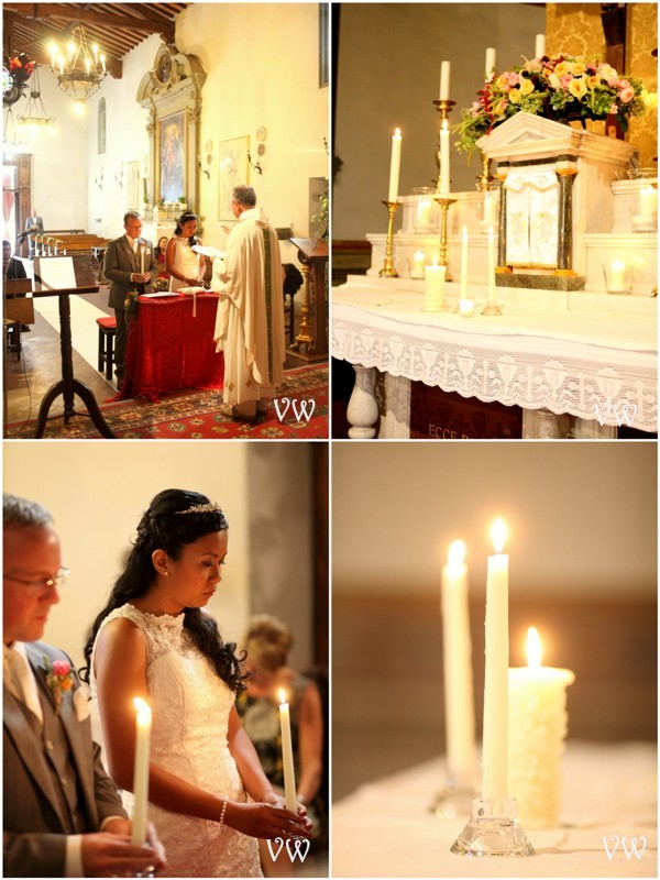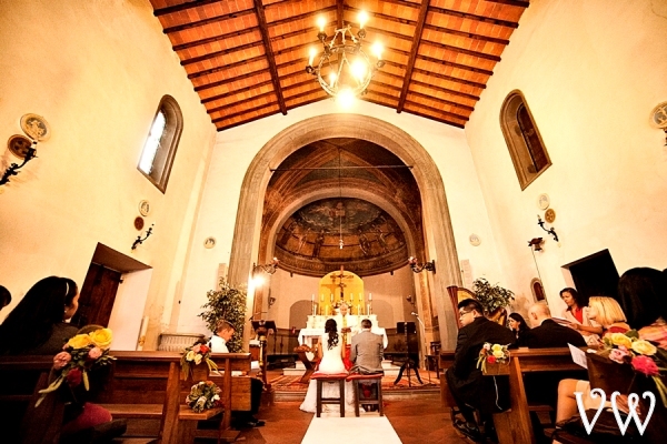 Today I want to share with you an intimate wedding in Tuscany. Liz and Steve chose Tuscany to celebrate their wedding with their family and their closer friends. The small church was perfect for this small group and the colors perfectly matched with the end of summer. The villa in Chianti, surrounded by olive trees and cypress, was the venue for their wedding dinner. The wedding theme was country chic and we decorated the church with mixed flowers pew ends and candles.
