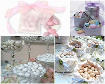 The sugar almonds can be placed in each guest’s place seating, wrapped in organza bag or in a favor box.